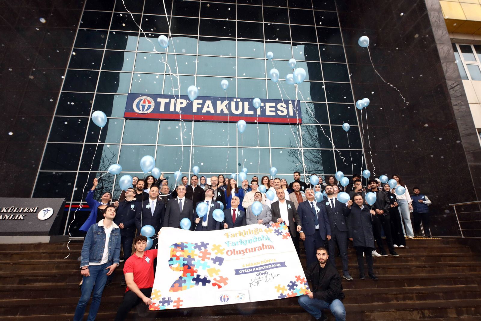 Programda planlanan farkındalık yürüyüşü, hava muhalefeti nedeniyle iptal edilirken, etkinlik öğrencilerin katılımıyla Tıp Fakültesi önünde mavi balonların gökyüzüne bırakılmasıyla sona erdi.